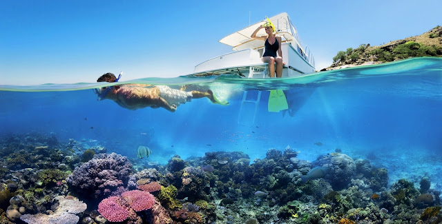 Dengan begitu, wisatawan bisa bermain dengan berbagai jenis ikan, penyu, paus dan sebagainya. Bagi wisatawan yang tak bisa melakukan scuba diving atau snorkeling tak perlu khawatir, mereka tetap bisa menikmati keindahan laut di Great Barrier Reef dengan menggunakan sebuah kapal yang bagian lantainya di desain menggunakan kaca.